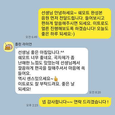 여러분의 음악을 완성하고, 대중에게 닿을 수 있도록 도와드립니다.